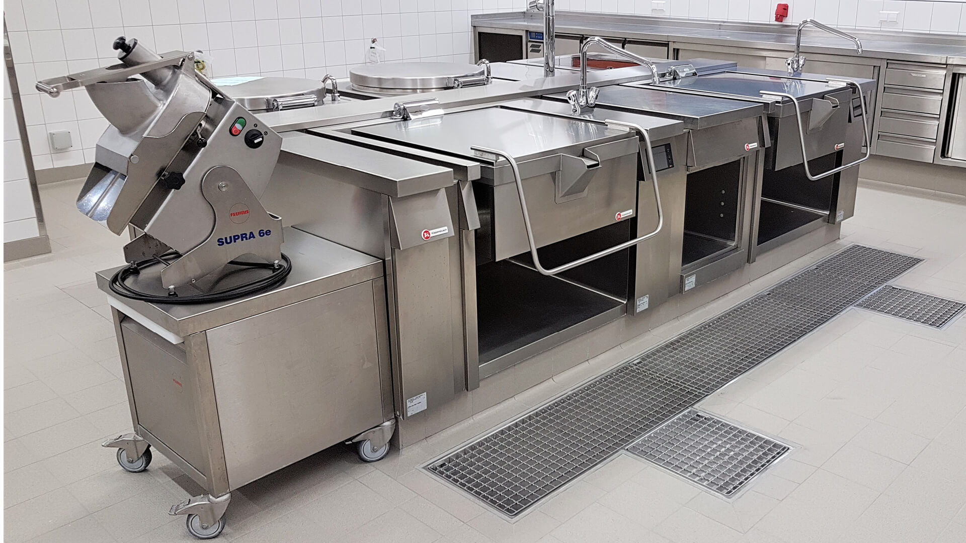Großküche mit Bodenabläufen